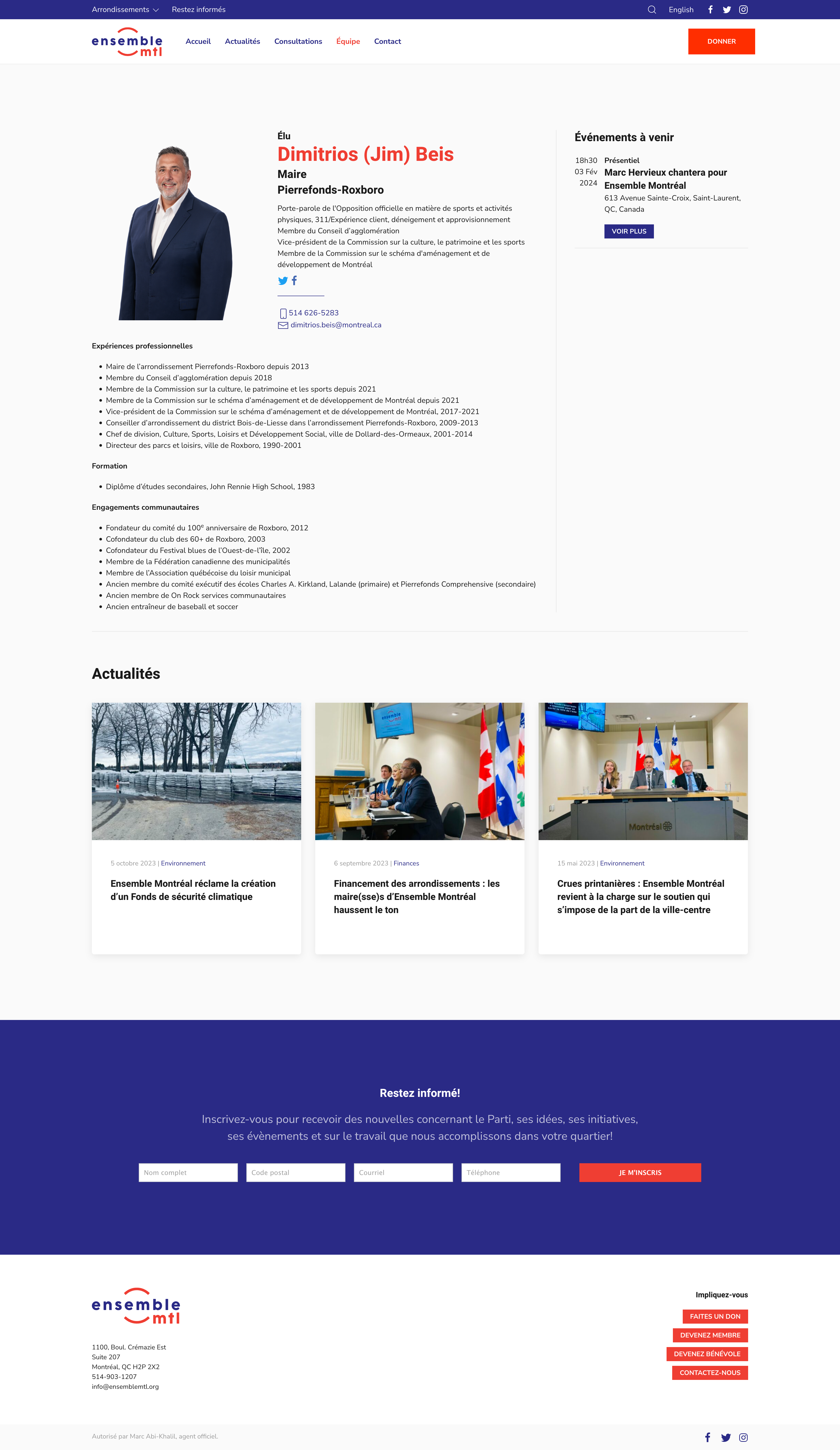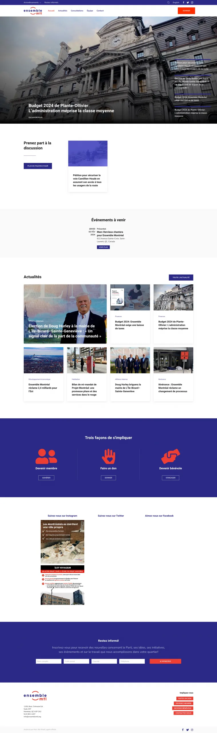 Développement d'un site web et d'une plateforme de pétitions pour le parti municipal : Ensemble Montréal