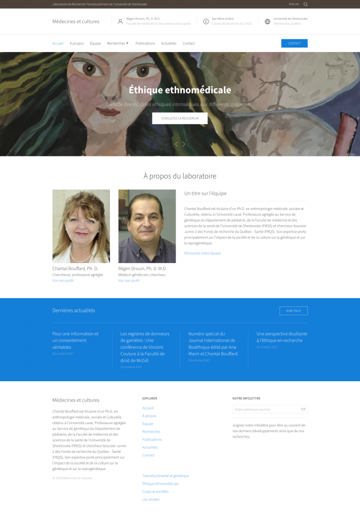 Ce projet a consisté à créer une identité et une plateforme numérique pour le Laboratoire de Recherche Transdisciplinaire de l’Université de Sherbrooke, axée sur la facilitation de la recherche collaborative. En étroite consultation avec les universitaires, j’ai développé un site web personnalisé qui intègre un CRM sur mesure pour la gestion de contenu, améliore l’expérience utilisateur (UX) et optimise le référencement (SEO). Le design intuitif et l’interface utilisateur (UI) permettent une navigation fluide, reflétant l’engagement du laboratoire envers l’excellence et l’innovation en recherche.