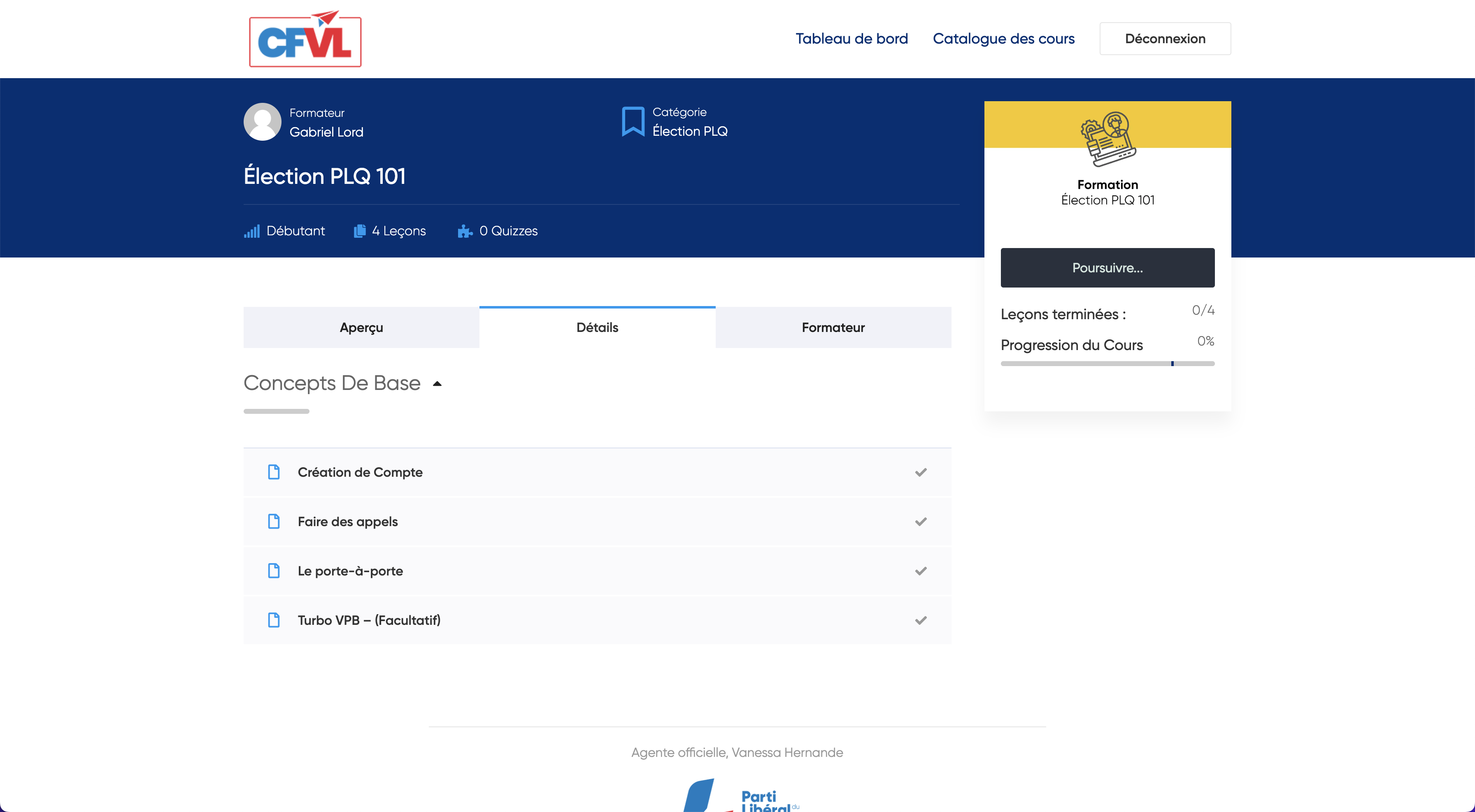 Création d'une plateforme d'apprentissage en ligne personnalisée pour l'autonomie des instructeurs et la validation des membres du PLQ.